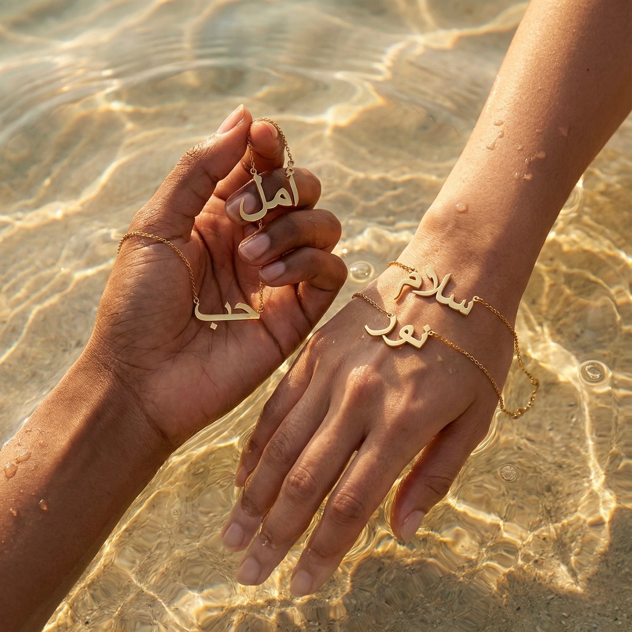 Your name holds your roots, your culture, your history. Now you can wear it in authentic Arabic calligraphy — a piece that feels like home, wherever life takes you.