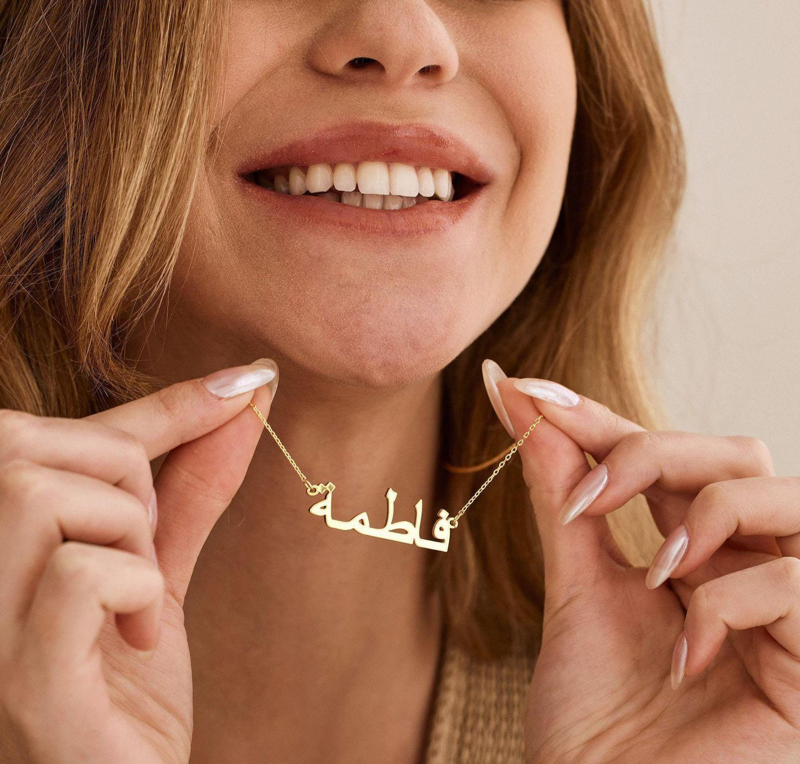 Wearing this personalized Arabic name necklace brings your identity to life in the most meaningful way.