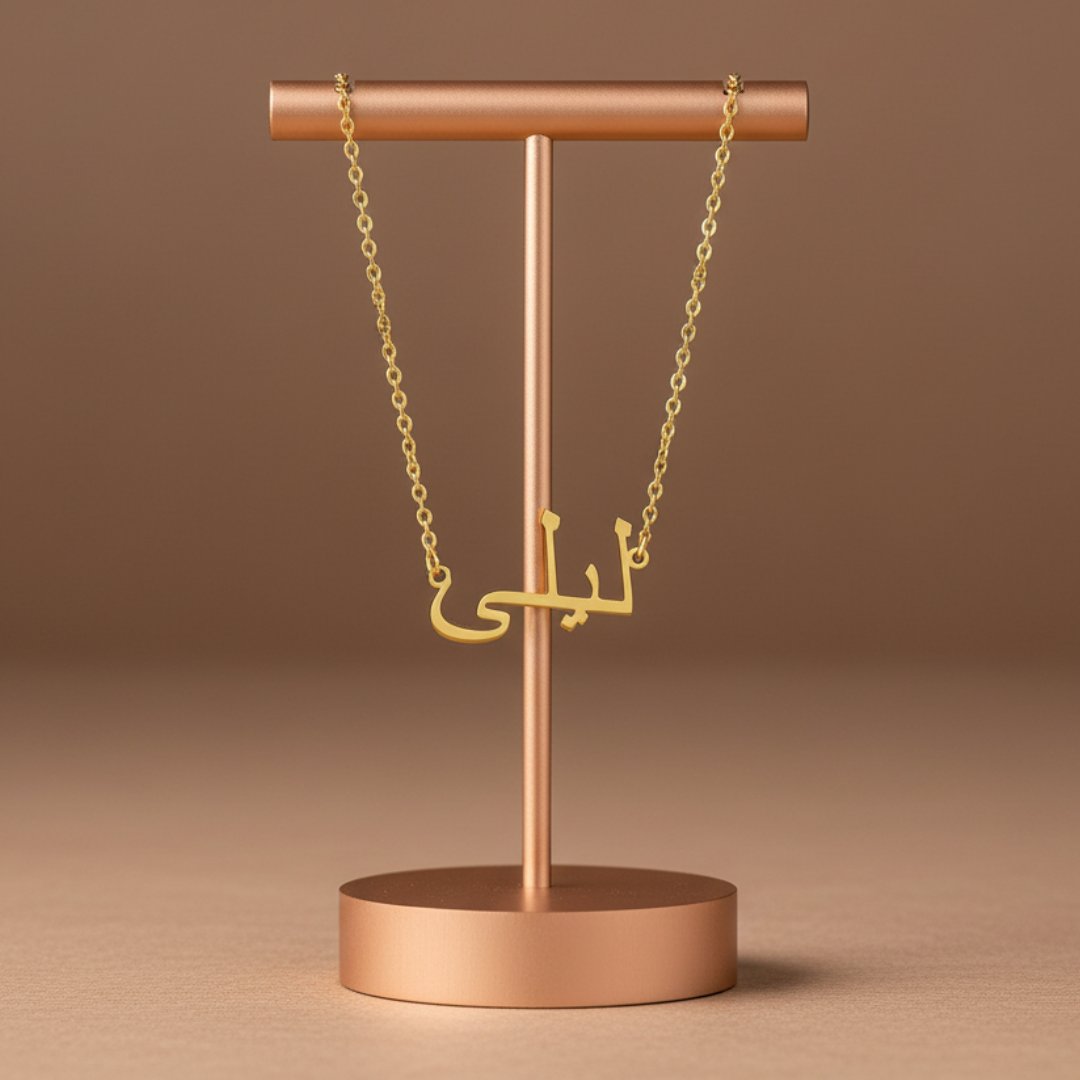 Your name holds your roots, your culture, your history. Now you can wear it in authentic Arabic calligraphy — a piece that feels like home, wherever life takes you.